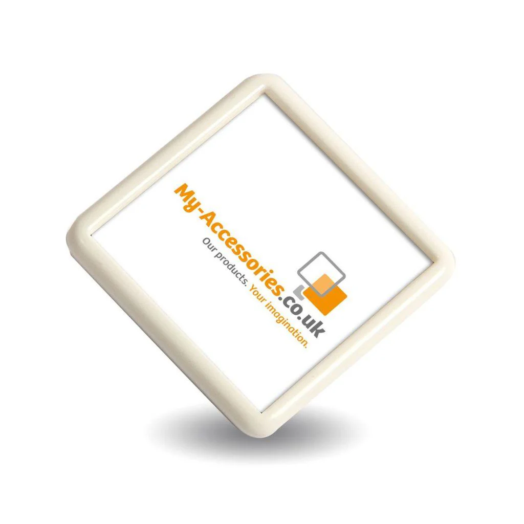 25mm Square White Blank Plastic Pin Badge - Pack of 50